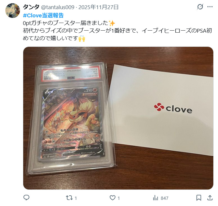 X上ではCloveオリパで当たりを引いた報告が多く見られる。