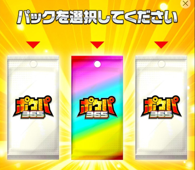ポケパ365ではオリパを引くパックを6つの中から選べて、その中に低確率で虹色や金色のパックが出現するという業界初演出があります。