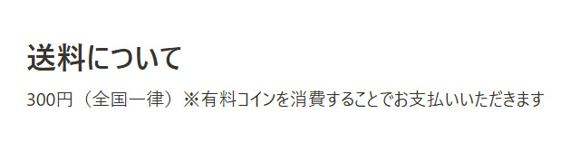 | 送料 | ・月に1回無料 ・2回目以降1,000ポイント |