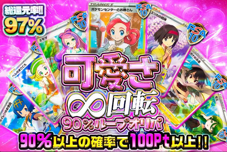 特にポケパ365には新規登録者限定のPSA10確定オリパの他、「ブイズ確定」「女の子サポート確定」などコンセプトを絞ったPSA10確定オリパが豊富です!
